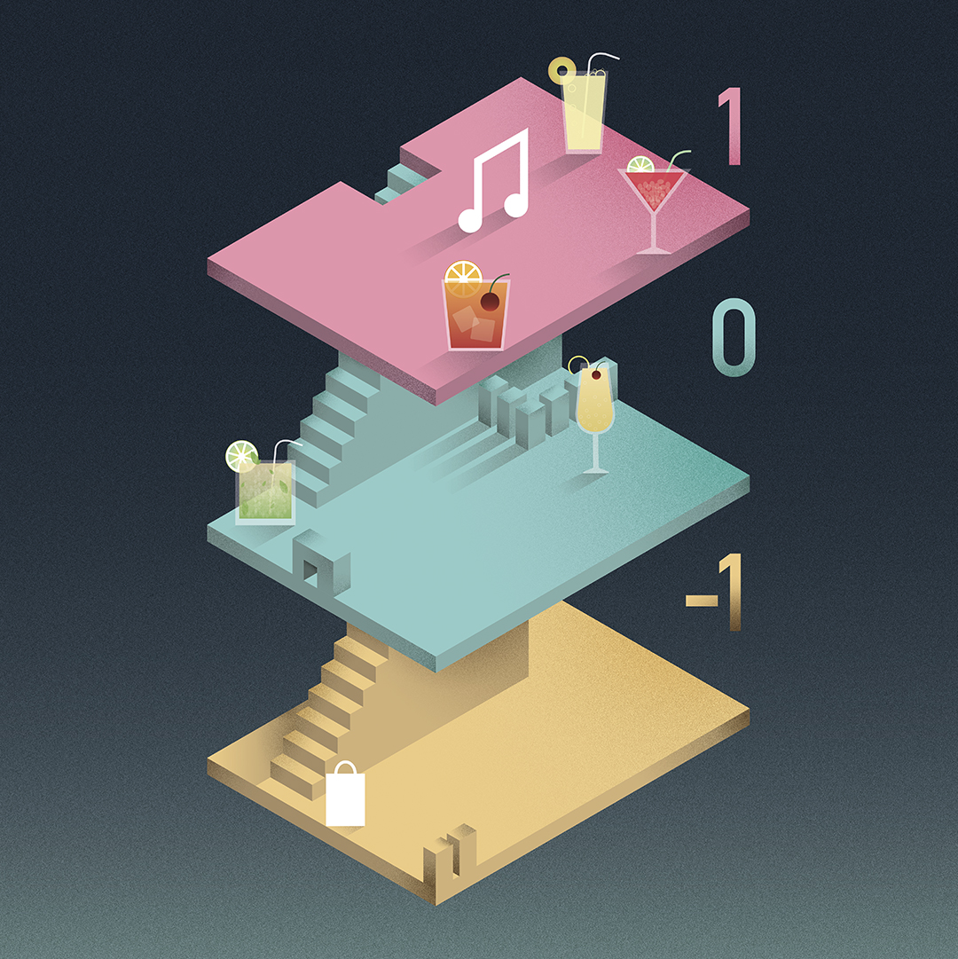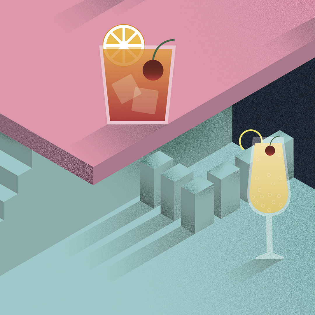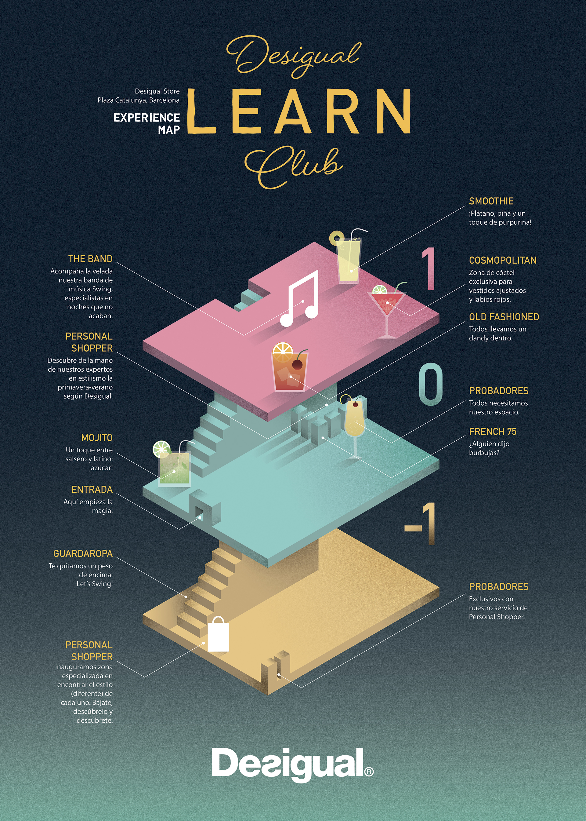 Diseño del menú de bebidas y mapa del espacio para un evento en una tienda de Desigual.